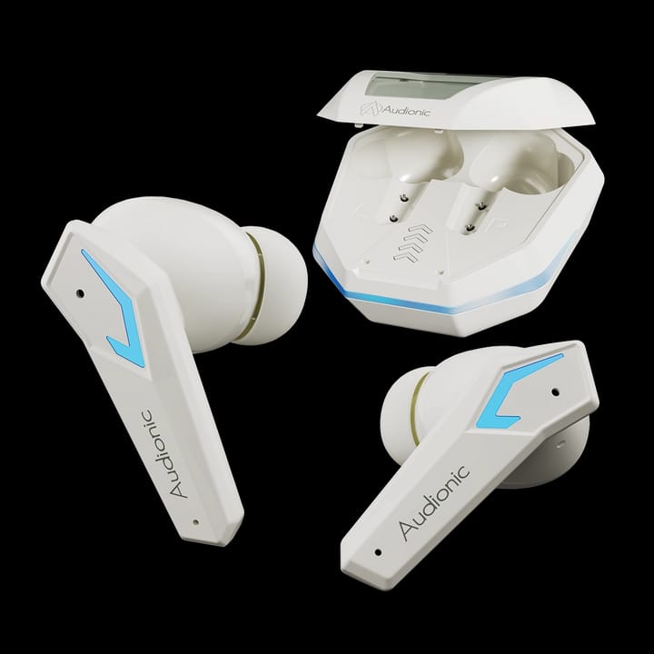 Step up your gaming experience with Battlebuds Gaming Earbuds in crisp white.
