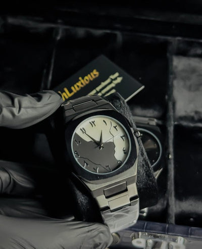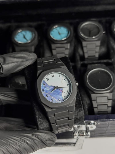 Black Arabic Aura Marble ( Sky Blue & Grey - Silver Digits )