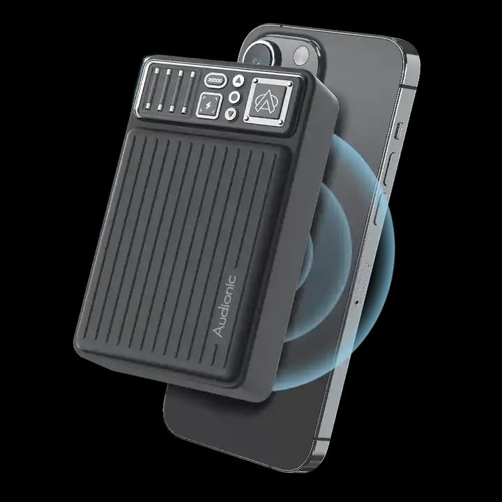 - Charge your devices effortlessly with the Magneto Pro Max 20000 mAh Wireless Powerbank in vibrant black.