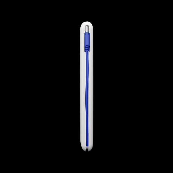 - Its sleek white design combines convenience and portability, eliminating the need to carry extra cables.